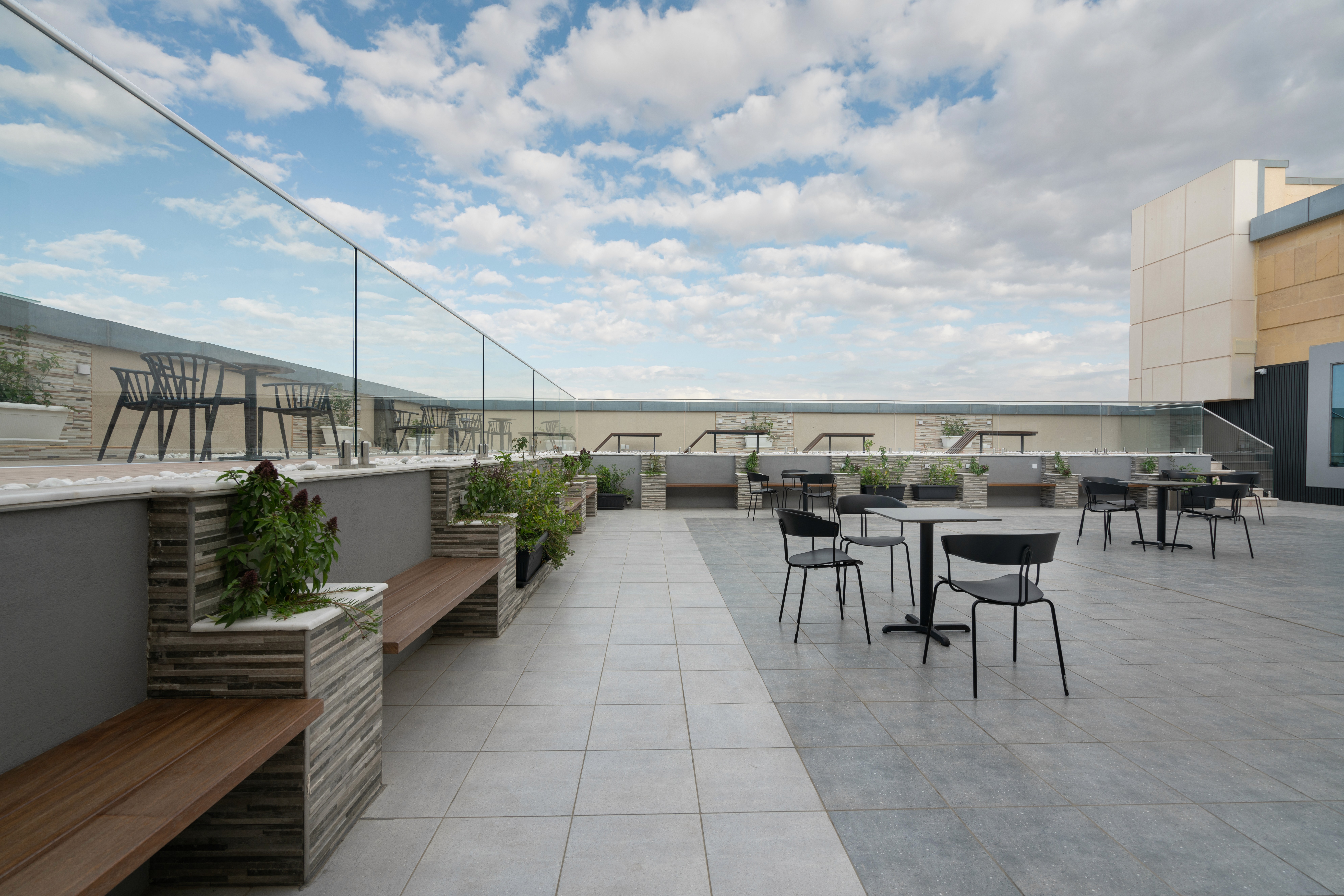 نستخدم ألوانًا طبيعية، وخامات أصلية، وإضاءة مدروسة، وروائح مميزة في الممرات، لأننا نؤمن أن التفاصيل الصغيرة تصنع تجربة كبيرة.